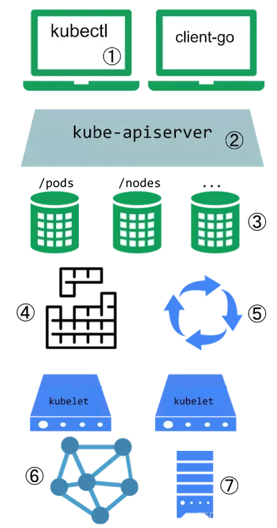 Aggreated API Server,即聚合 ApiServer, 像我们常用的 metrics-server 属于此类,通过此特性 Kubernetes 将巨大的单 apiserver 按资源类别拆分成多个聚合 apiserver, 扩展性进一步加强,新增API无需依赖修改 Kubernetes 代码,开发人员自己编写 ApiServer 部署在 Kubernetes 集群中, 并通过 apiservice 资源将自定义资源的 group name 和 apiserver 的 service name 等信息注册到 Kubernetes 集群上,当 Kubernetes ApiServer 收到自定义资源请求时,根据 apiservice 资源信息转发到自定义的 apiserver, 支持 kubectl、支持配置鉴权、授权、审计,支持自定义第三方 etcd 存储,支持 subResource log/exec 等其他高级特性定制化开发。