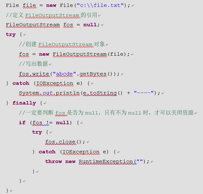 1.保证流对象变量的作用域足够,即在try外面声明变量,在try里面建立流对象
