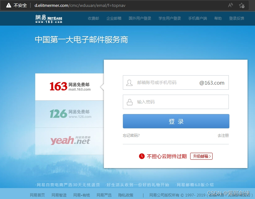 这个页面看起来跟网页邮箱登陆界面一样,标题栏显示的是“网易免费邮箱-中国第一大电子邮件服务商”,不过地址栏显示的网址是: