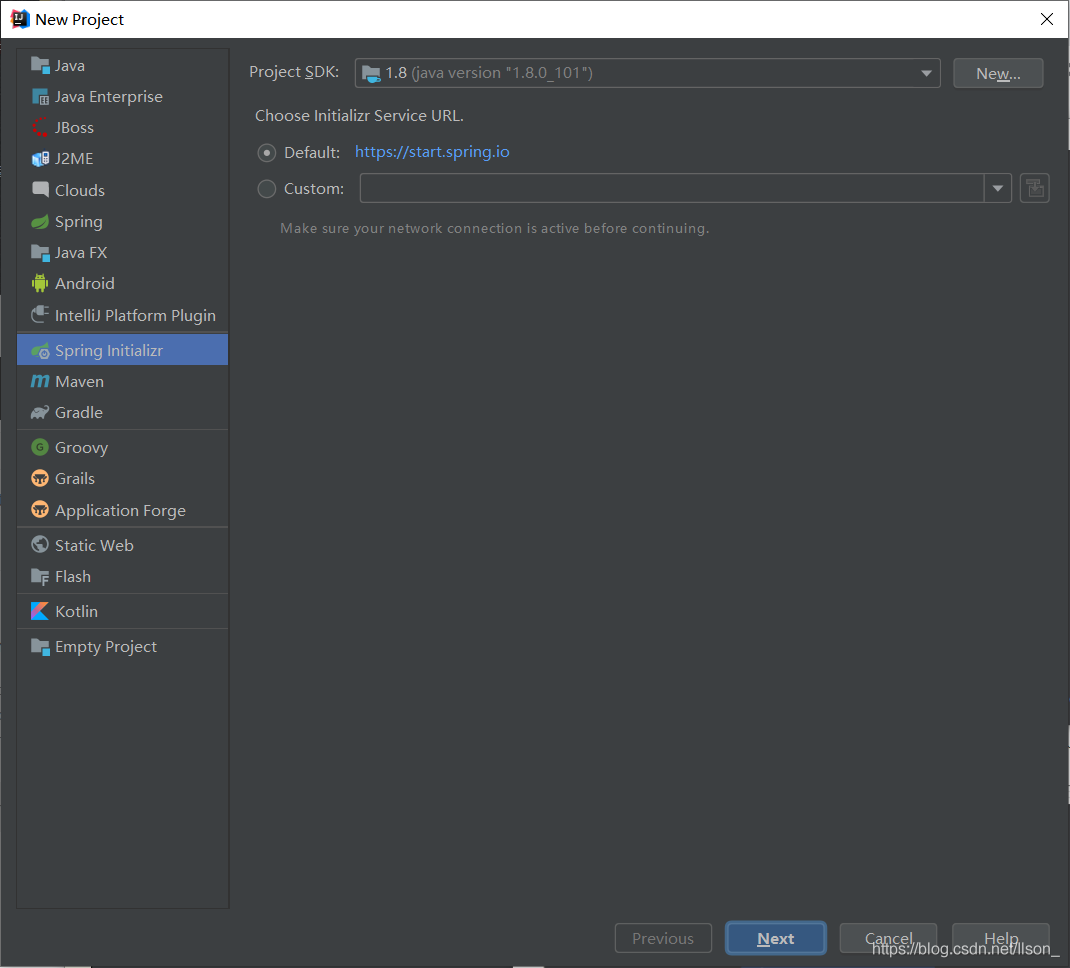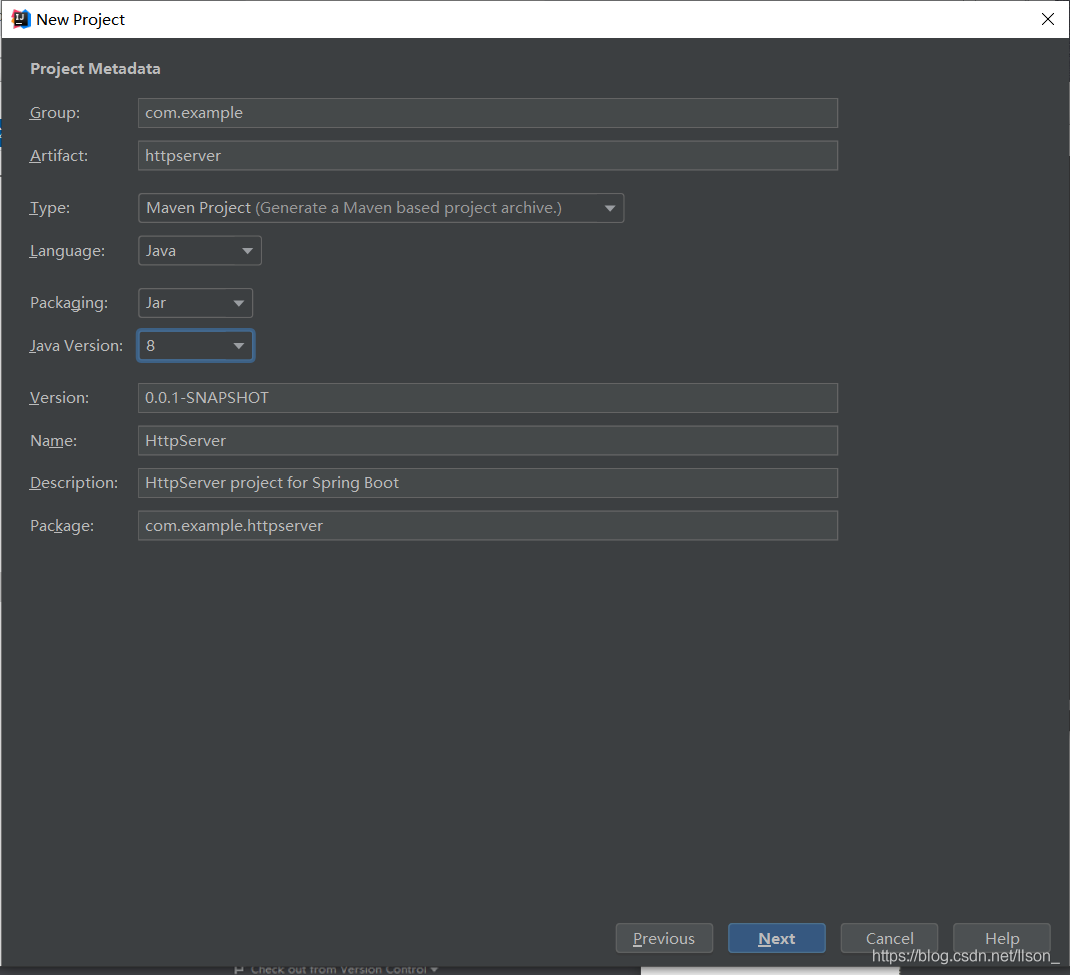 打开IntelliJ IDEA后选择Create New Project新建一个工程,然后在打开窗口中选择Spring Initializr,因为我这Java版本是1.8的,所以在点击Next后的窗口中,JavaVersion选择了8,至于其他的就按照自己意思来填写了,值得注意的是Artifact这里需要全部小写。