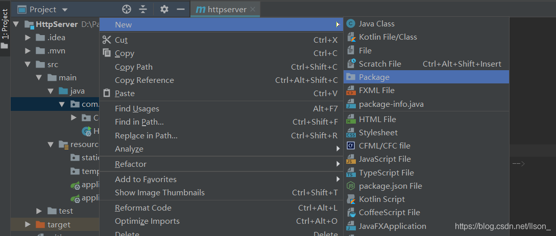 在src->main->java->com.example.httpserver下,右键弹出菜单New->Package建立一个包Controller,然后再Controller里添加一个Java Class,也是右键弹出菜单New->Java Class,类名自己随意就好。