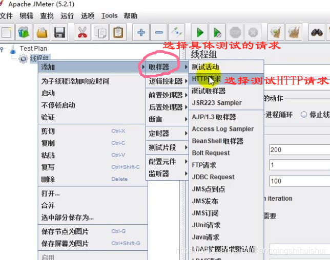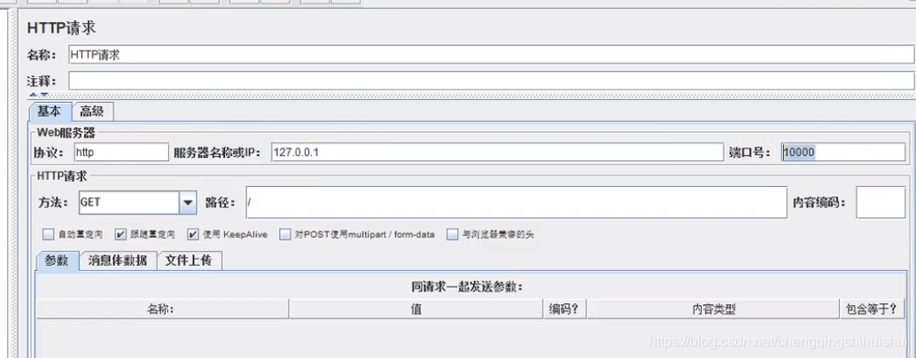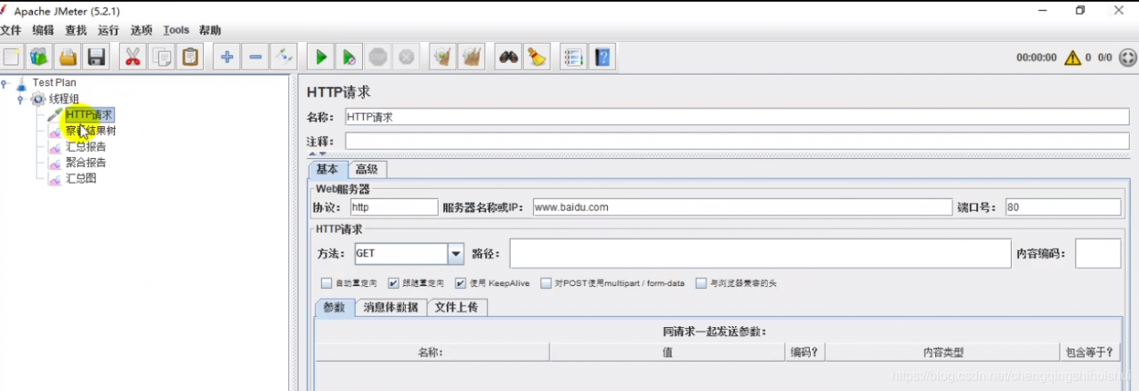 (1)按照前面的教程配置好 线程组 和 HTTP请求