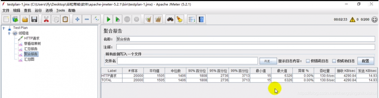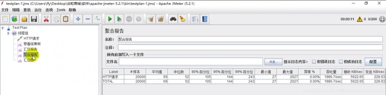 聚合报告,主要是用于看90%,95% 百分位,进阶评估系统性能