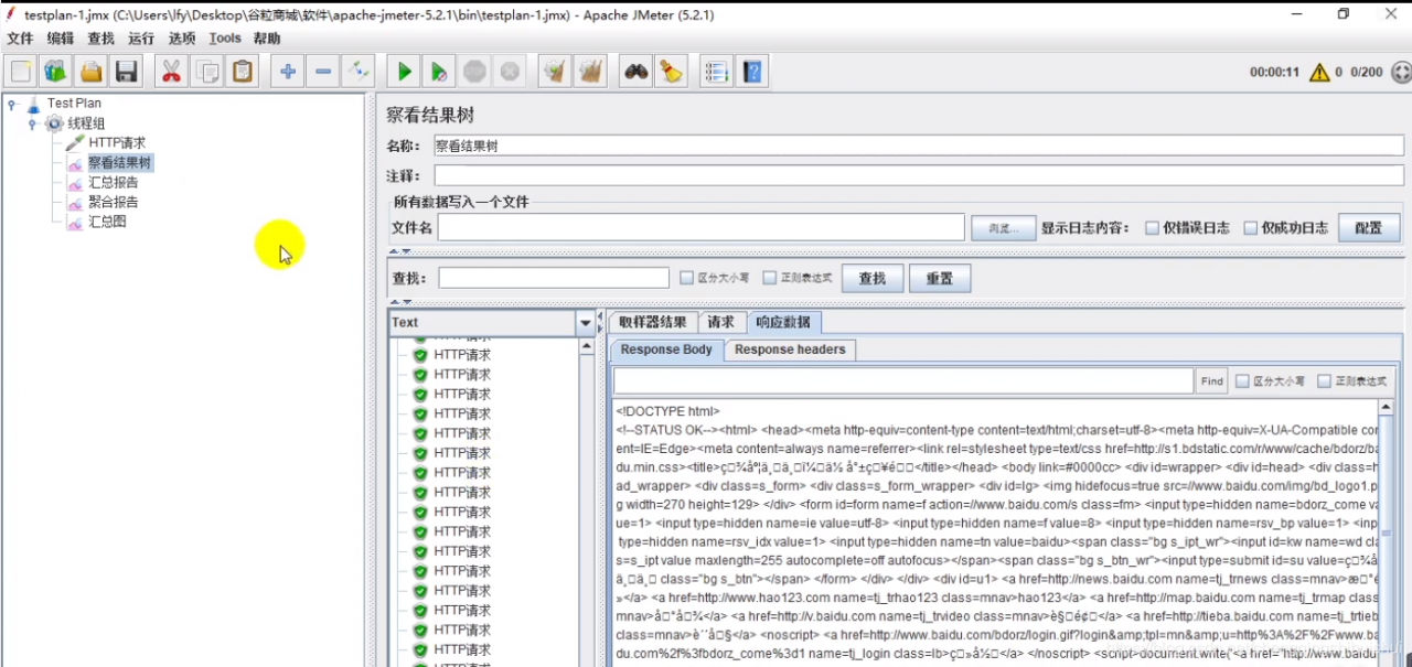 (2)配置好线程组和HTTP请求以后,点击启动,便可开始测试