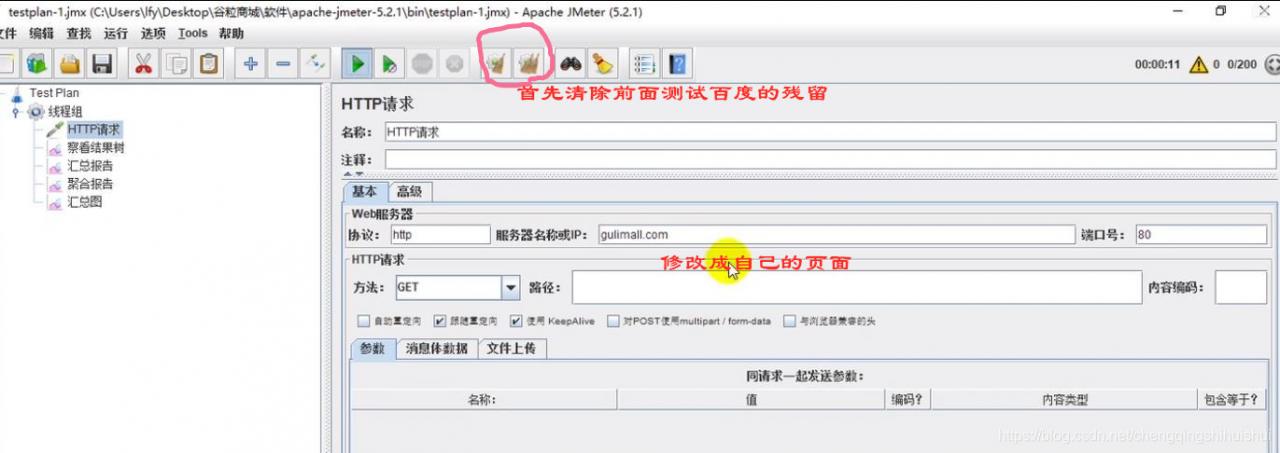 (1)改HTTP请求(线程组设置不用改,所有测试项目都可以用同样的设置)