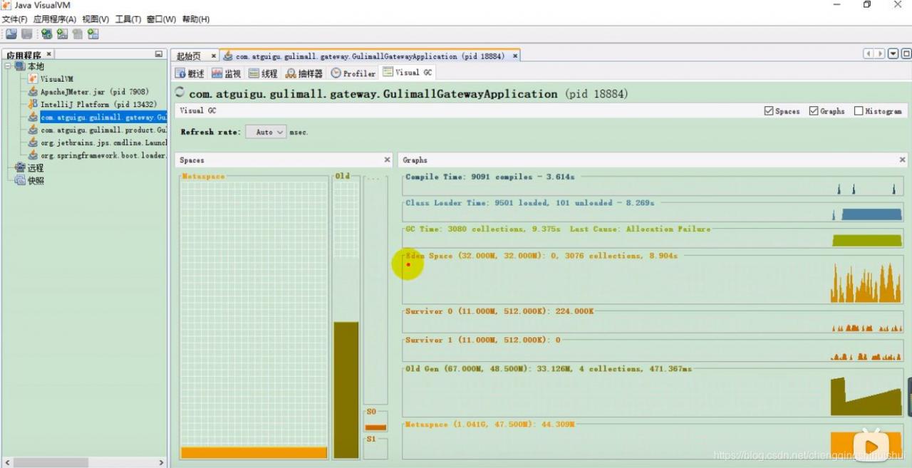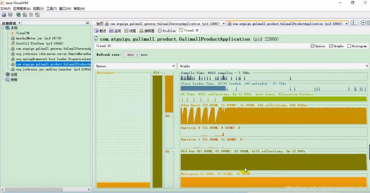 jvisualvm监控到伊甸园区内存频繁gc,把伊甸园区内存调大,效率明显提高