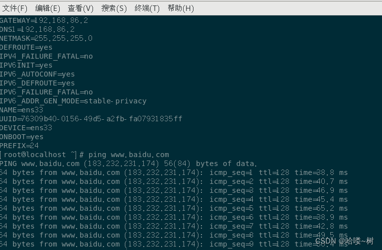 改完需要重启:service network restart