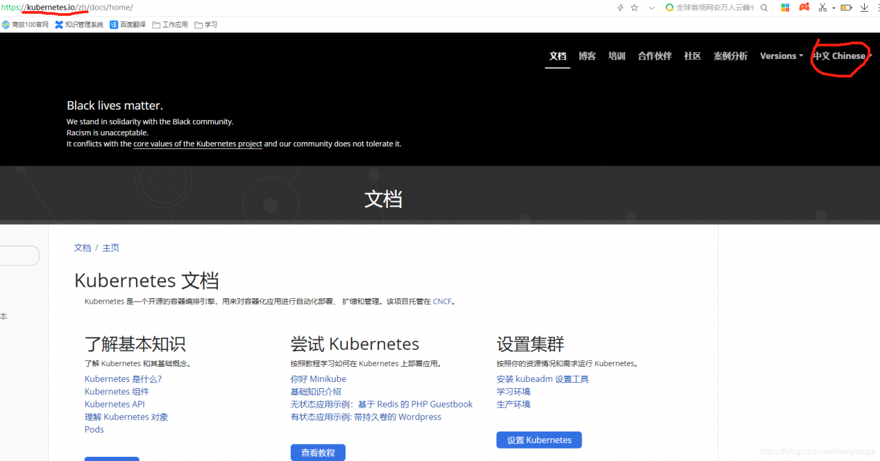 K8S的官方社区让我最满意的地方就是,支持中文语言,直接在网站上选择“中文”,就可以愉快的阅读学习啦!