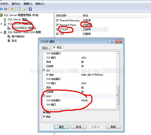 password=密码同样的,我在sql server的管理工具中,也是对tcp/ip进行了配置,包括通信管道啊都是开启的,但是就是连接不上。