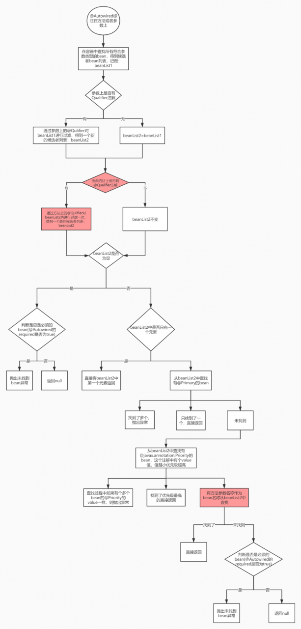 @Autowired标注在方法上或者方法参数上面:假定参数类型为为一个自定义的普通的类型,候选者查找过程如下: