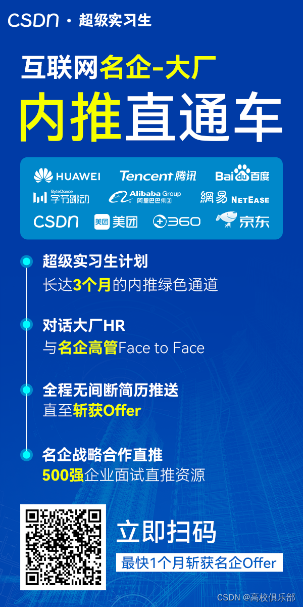 2022年1月,解决就业难,进大厂难CSDN超级实习生计划正式开启!大厂、名企实习直通车,年薪最高可达30万。