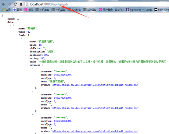 这样在运行项目下就可以得到自己想要的json数据,如下: