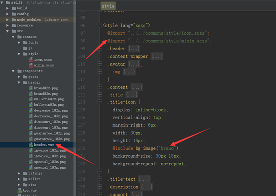此时可以在模块中定义scss来书写scss代码,还可以新建*.scss文件,并且可以利用
