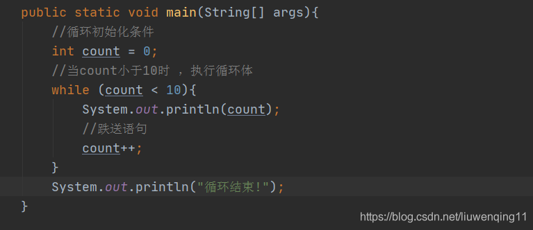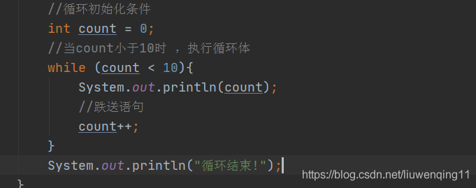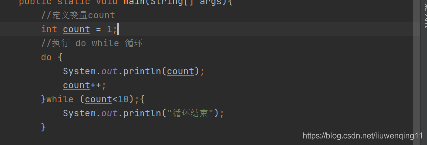 while 循环则 先执行循环体,然后在判断循环条件,如果循环条件为真,则执行下一次循环,否则终止