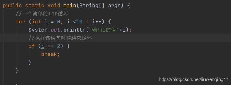 个return语句,return语句就会结束该方法,循环自然就结束了。实例