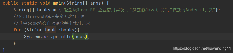 合元素,foreach循环自动遍历数组和集合的每个元素。