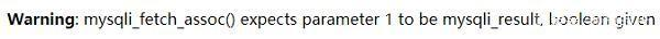 错误五:Warning: mysqli_fetch_assoc() expects parameter 1 to be mysqli_result, boolean given …
