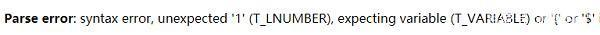 错误四:Parse error: syntax error, unexpected ‘1’ (T_LNUMBER), expecting variable …