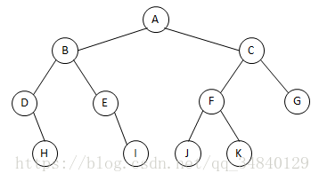 后(根)序遍历(左右根) : H D I E B J K F G C A