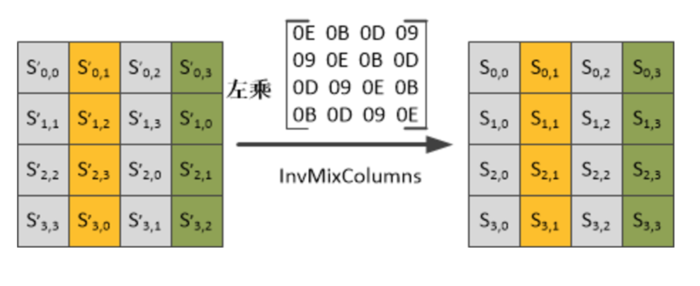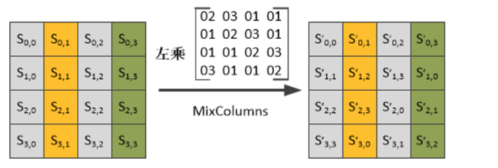 - 列混淆:将每列中的每个字节映射为一个新值,新值由该列中的4个字节通过函数变换得到。