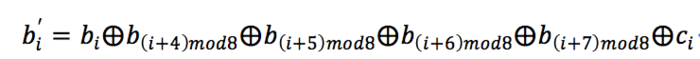 (3) 把S盒中的每个字节的8个构成位记为(b7, b6, b5, b4, b3, b2, b1)。对S盒的每个字节的每个位做如下的变换: