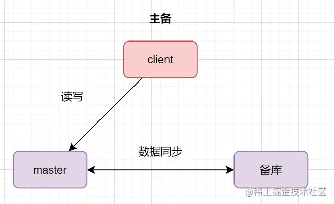 数据库主备:一台是主数据库,同时对外提供读写操作。一台是备库,只作为备份作用,不对外提供读写,主机挂了它就取而代之。数据从主库同步到备库。