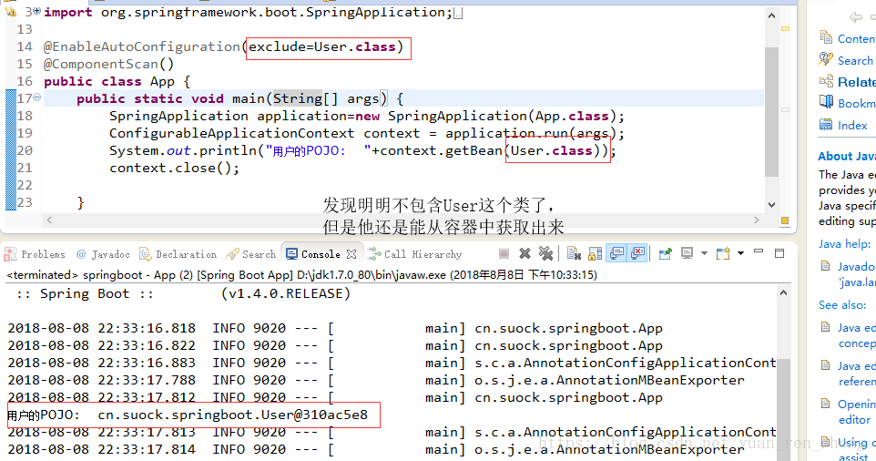 在学习SpringBoot的时候,入了不少的坑。今天学习@SpringBootApplication里面的@EnableAutoConfiguration注解的exclude属性的,加载配置中,发现了属性失效的case