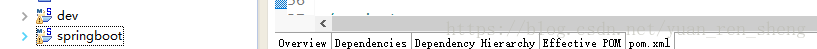 两个maven项目springboot 是主要的项目。我们springboot这个项目引用dev这个项目里面的某个配置的时候。就需要将两个项目做关联。我们可以在springboot这个项目里面加入dev这个项目的maven坐标,如下: