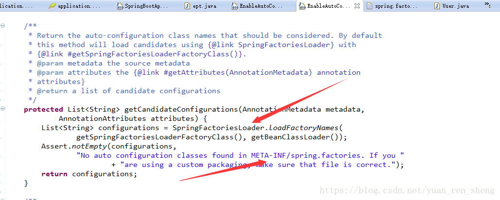 看到SpringFactoriesLoader这个类会加载classpath下面的META-INF/spring.factories文件下面的所配置的所有bean