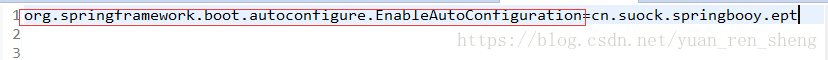 第二种:就是没在一个包下,@ComponentScan这个注解也没有扫描那个包。我们就可以通过spring.factory来配置。比如在dev这个项目中:如下: