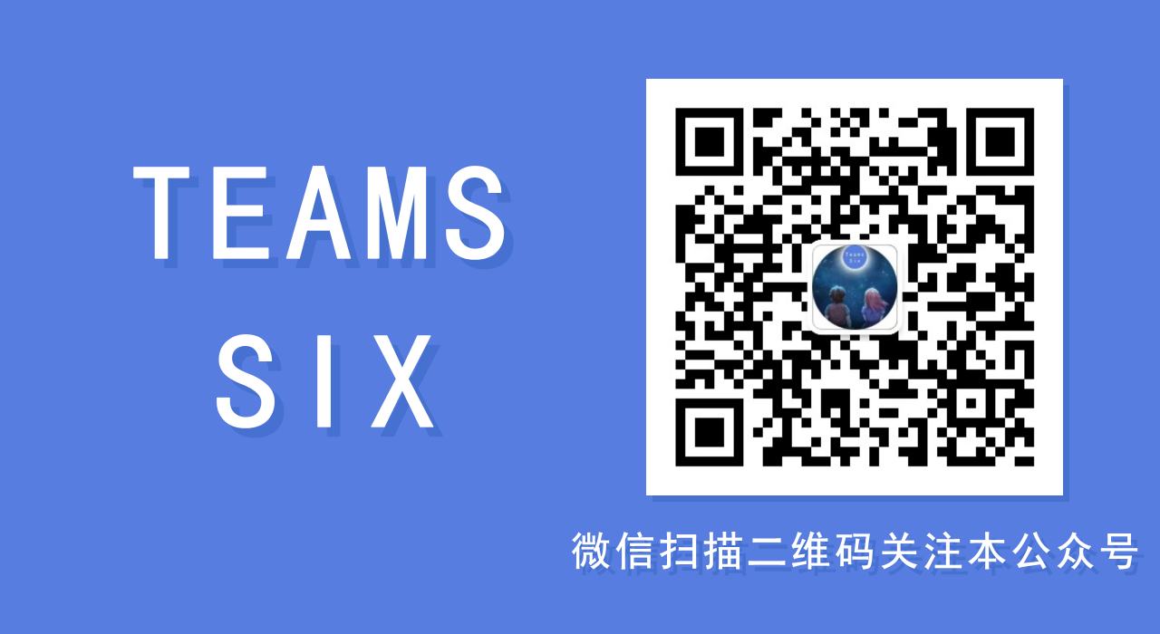 更多信息欢迎关注我的个人微信公众号:TeamsSix