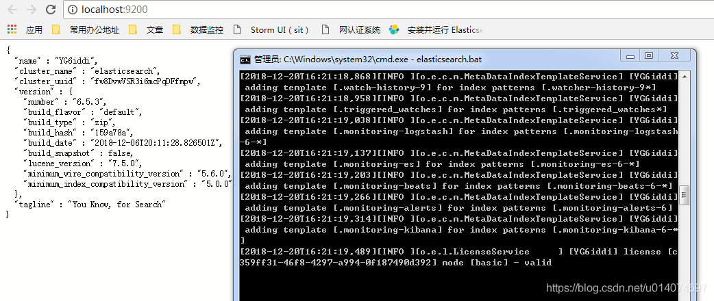 运行后,不要关闭该窗口,在你的浏览器输入 localhost:9200,结果如下,此时代表启动成功: