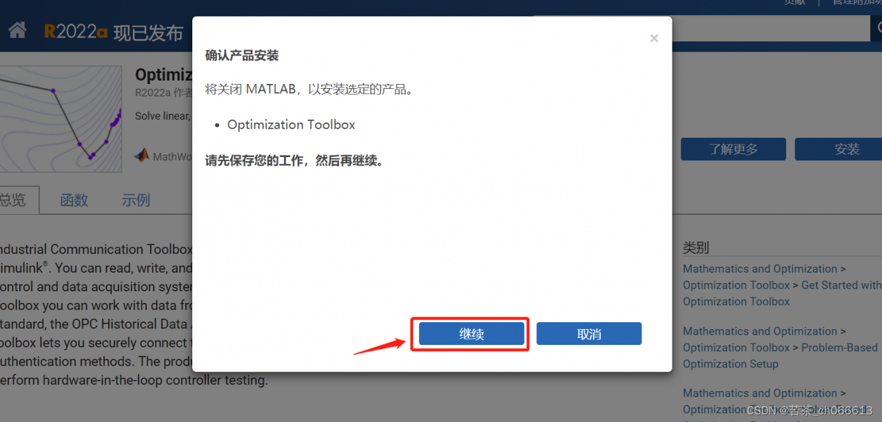 点击“继续”之前,记得保存你的代码!安装过程会重启Matlab