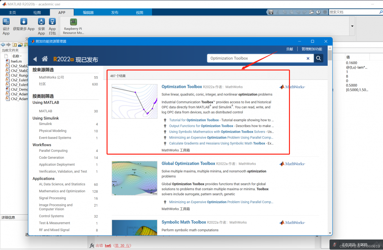今天使用matlab时出现了如下报错(为了重现纠错过程我删了装好的包,重新安装),我使用的函数是optimoptions,其他的也是一样的。