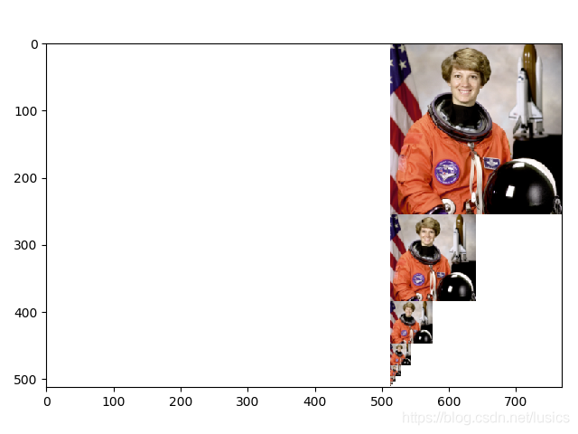 pyramid = tuple(transform.pyramid_gaussian(image, downscale=2)) # 产生高斯金字塔图像#共生成了log(512)=9幅金字塔图像,加上原始图像共10幅,pyramid[0]-pyramid[1]