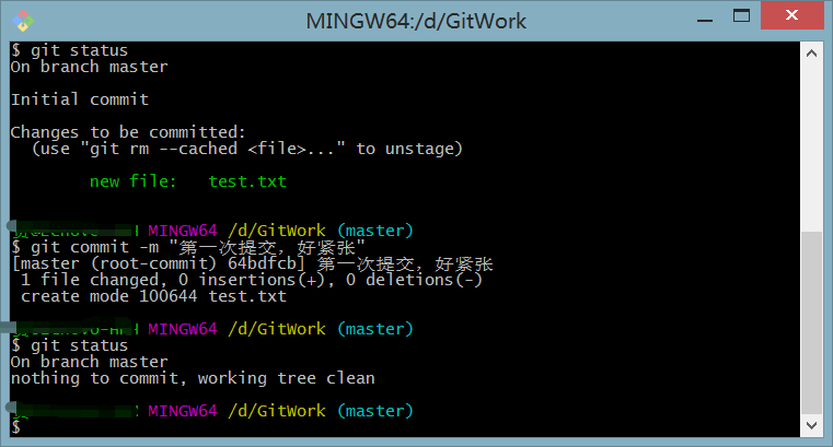 提交后,在使用git status命令查看,则可以发现没有需要提交的文件。