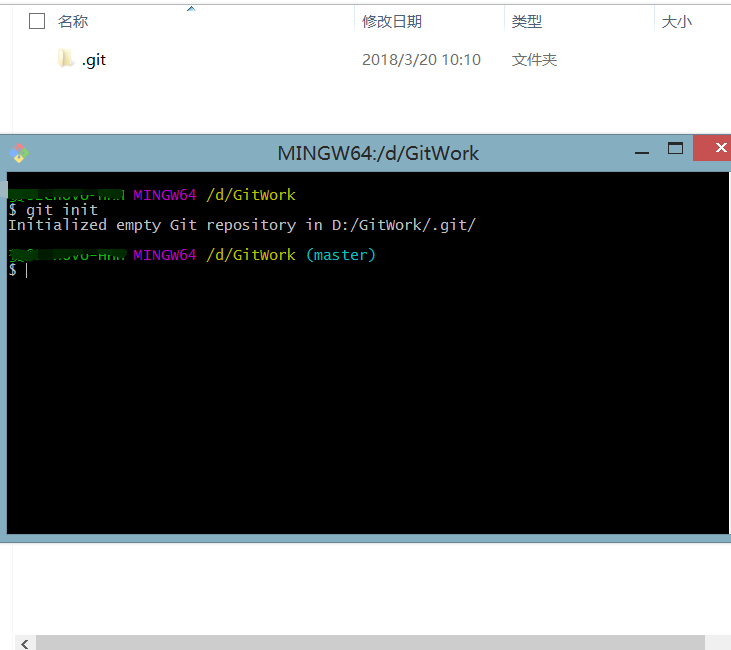 在本地新建一个repo,进入一个项目目录,执行git init,会初始化一个repo,并在当前文件夹下创建一个.git文件夹.可以发现当前目录下多了一个.git的目录,默认是隐藏的。