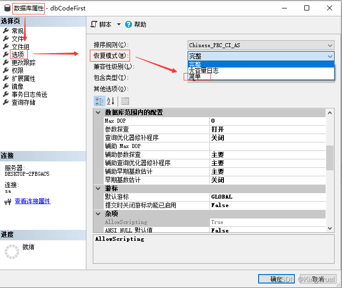 --收缩日志一定要把数据变为简单模式选择数据库,右键任务,收缩,文件