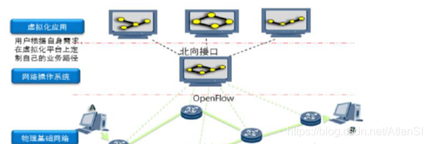 北向接口:应用层和控制层通信的接口,应用层通过控制开放的API,控制设备转发功能