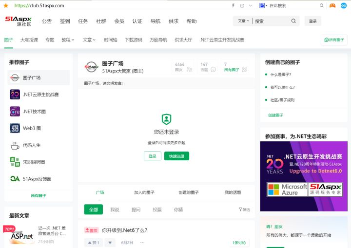 目前已经开通的圈子有,.NET技术圈、.NET云原生挑战赛圈子、求职招聘圈、Web3圈、代码人生圈、51Aspx反馈圈。