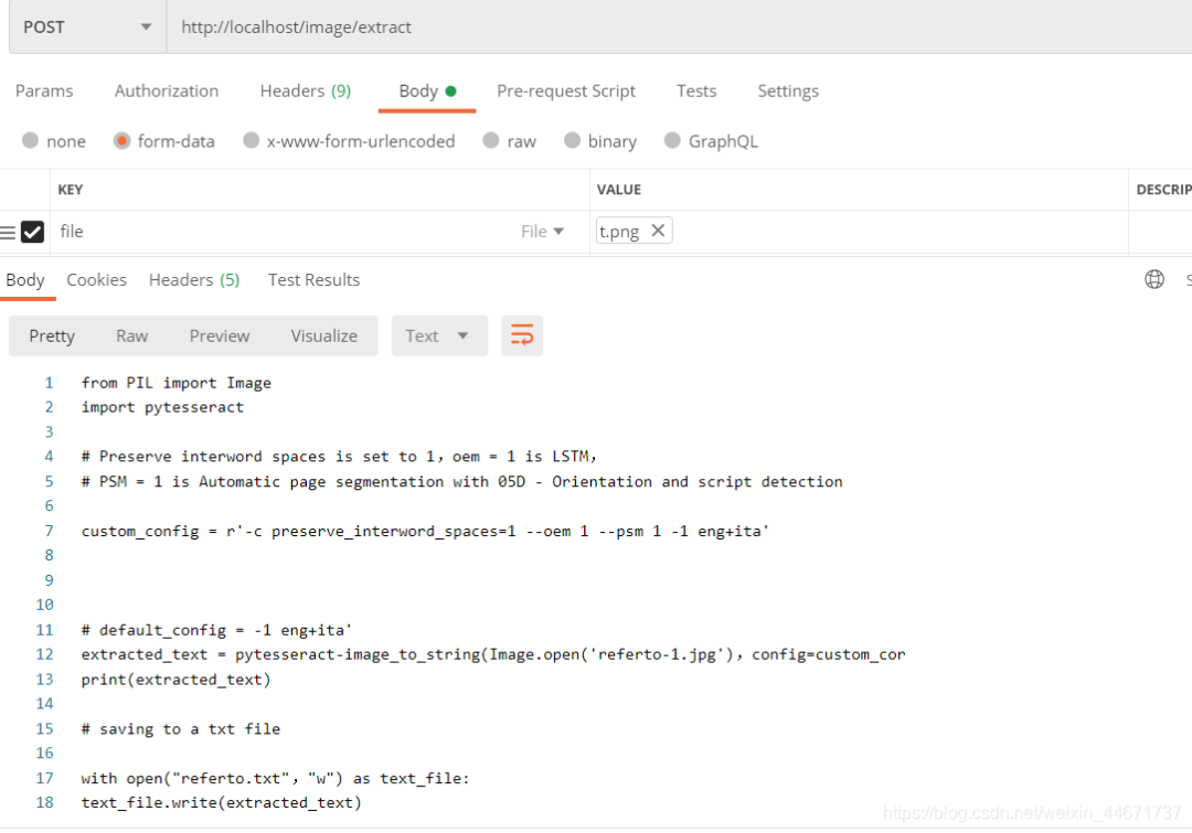 上传图片 -> 保存 ->对上传的图片执行tesseract指令->获取识别结果