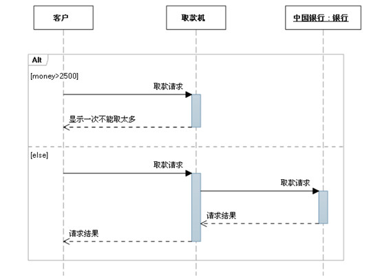 用来指明在两个或更多的消息序列之间的互斥的选择,相当于经典的if..else..
