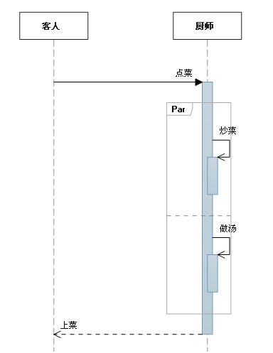 时序图是一个二维图,横轴表示对象,纵轴表示时间,消息在各对象之间横向传递,依照时间顺序纵向排列。