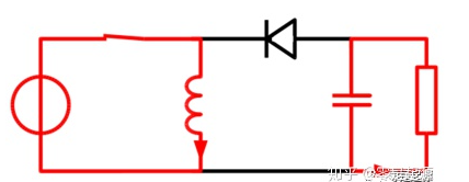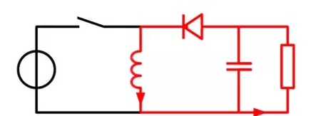 当开关断开时,在电感Ls上产生反向电动势,使二极管D从截止变成导通。电感给负载供电并对输出电容充电,维持输出电压不变。
