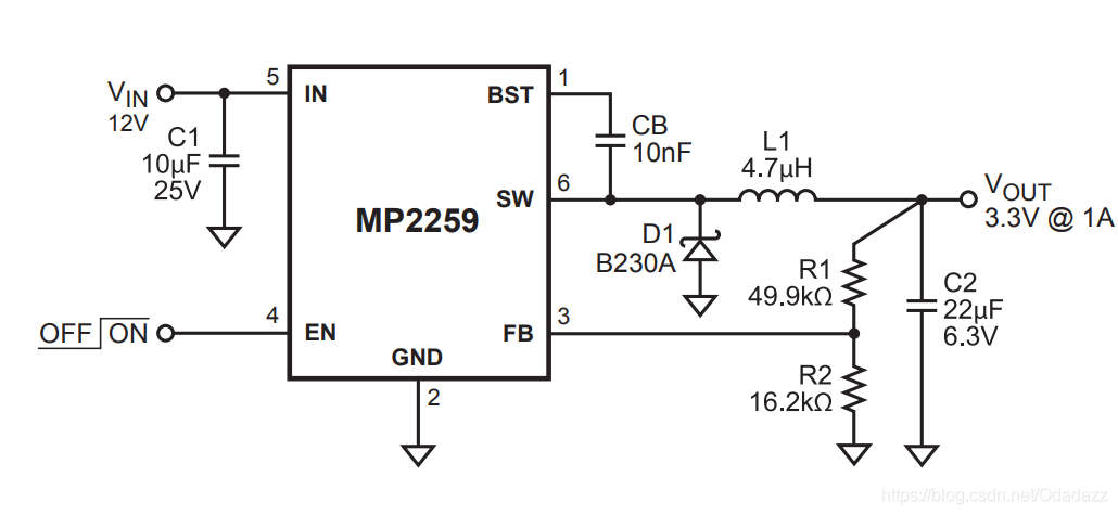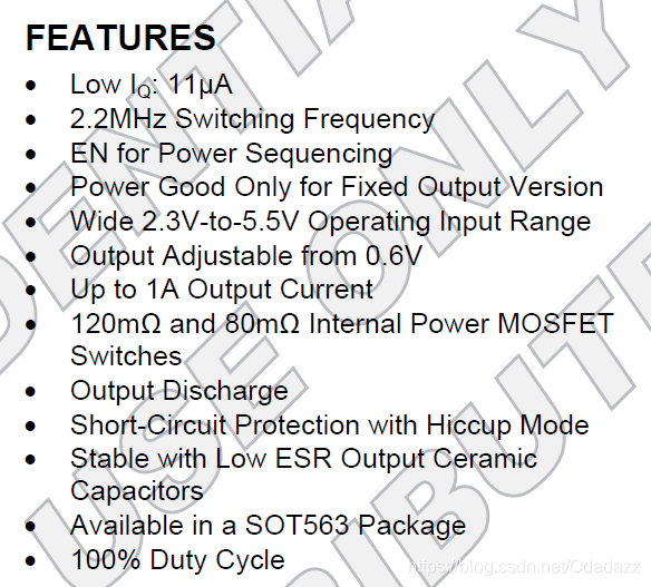 输出电压:Output Adjustable from 0.6V,100% Duty Cycle