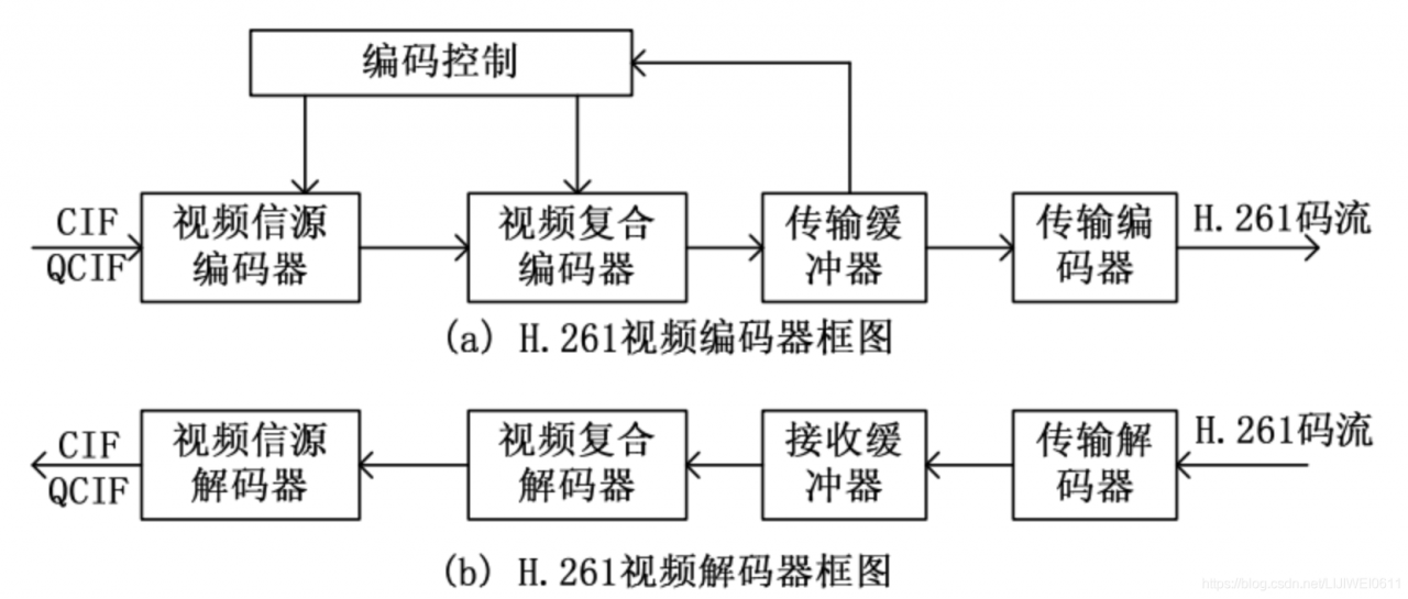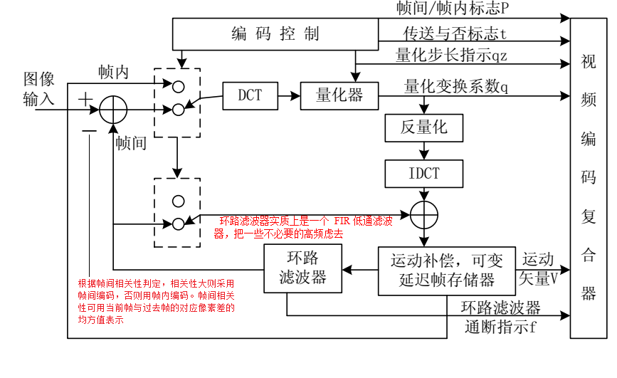 H.261信源编码器框图如下所示,输入以MB(宏块)为单位