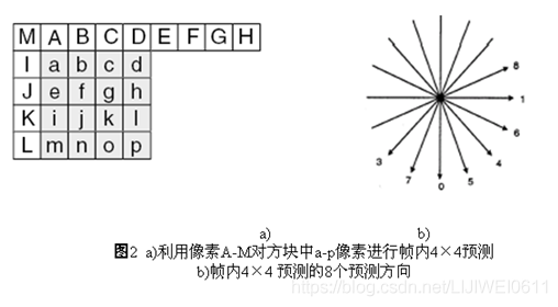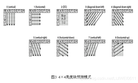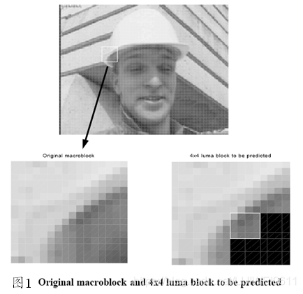 一幅图像被划分好宏块后,对每个宏块可以进行 9 种模式的预测。找出与原图最接近的一种预测模式。