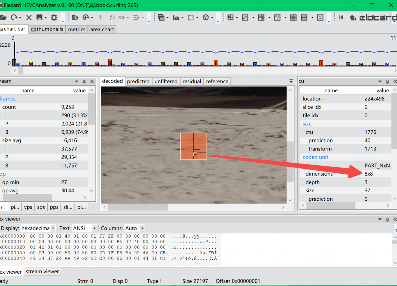 使用HEVC analyzer分析h265码流:宏块大小64x64 到 8x8