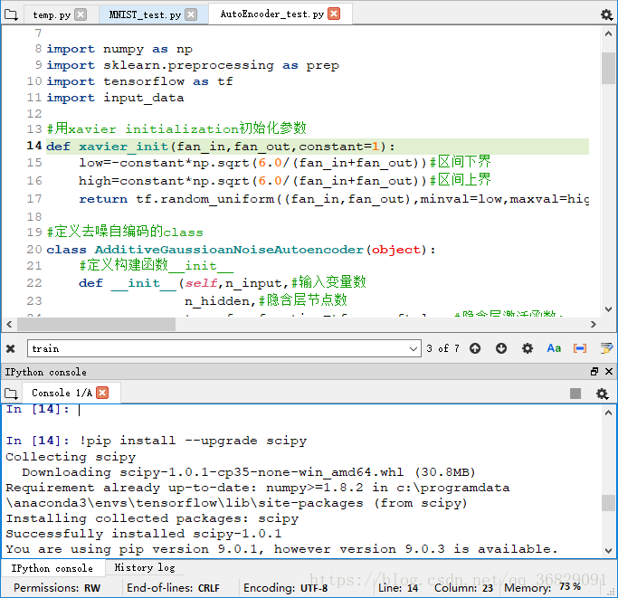 在使用Spyder或pycharm时需要import sklearn或scipy等module,但是在编译后可能出现错误: