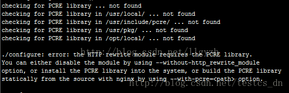 提示以下信息:./configure: error: the HTTP rewrite module requires the PCRE library.